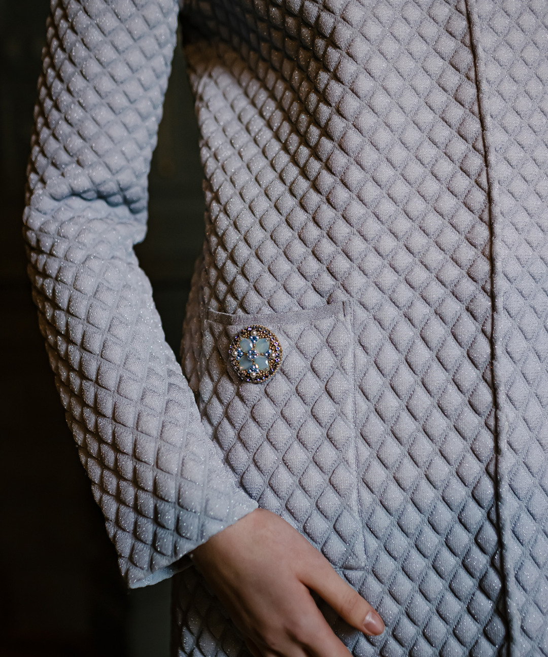jewelry embedded into the fabric, lending a sense of